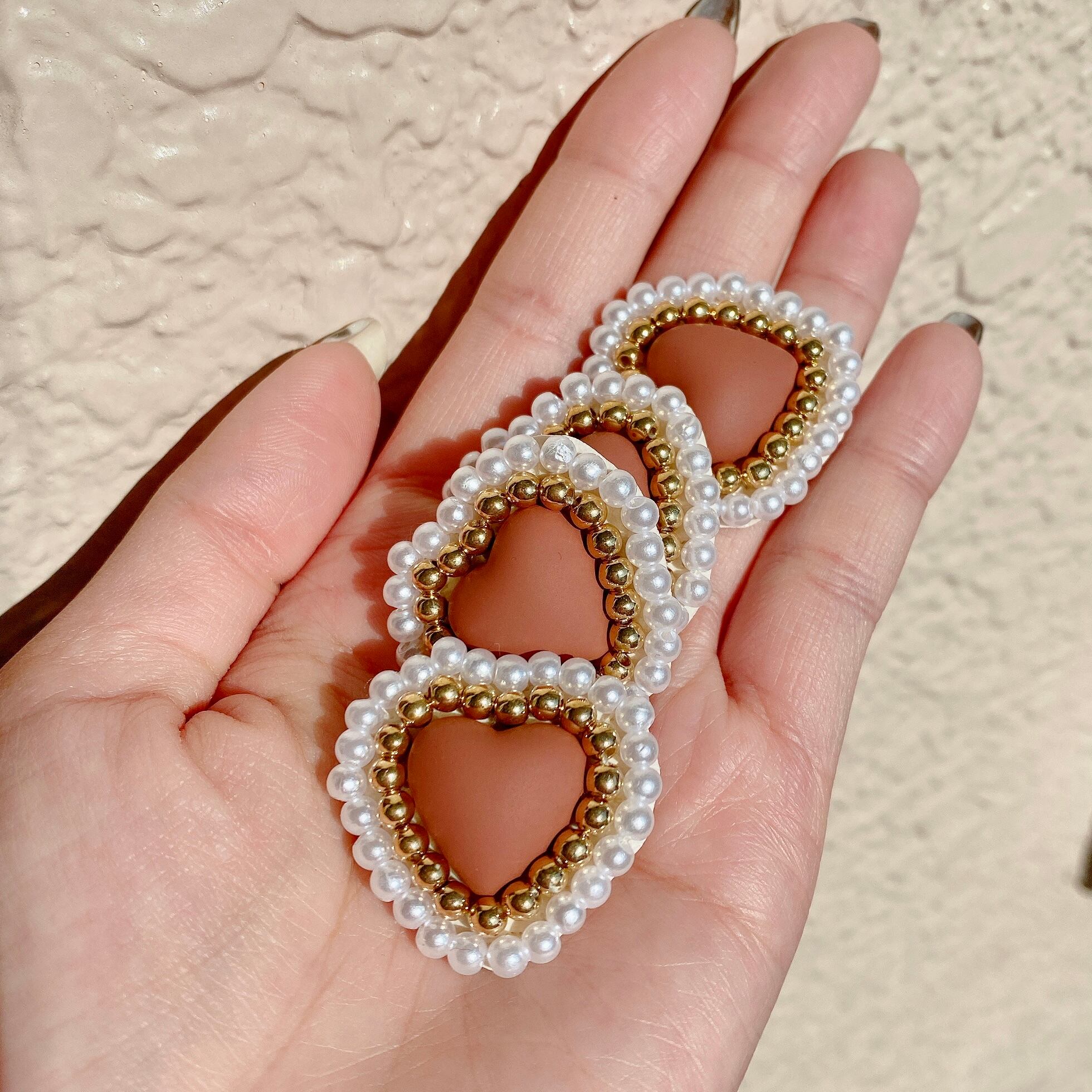 再販*ハートのビーズ刺繍ピアス イヤリング