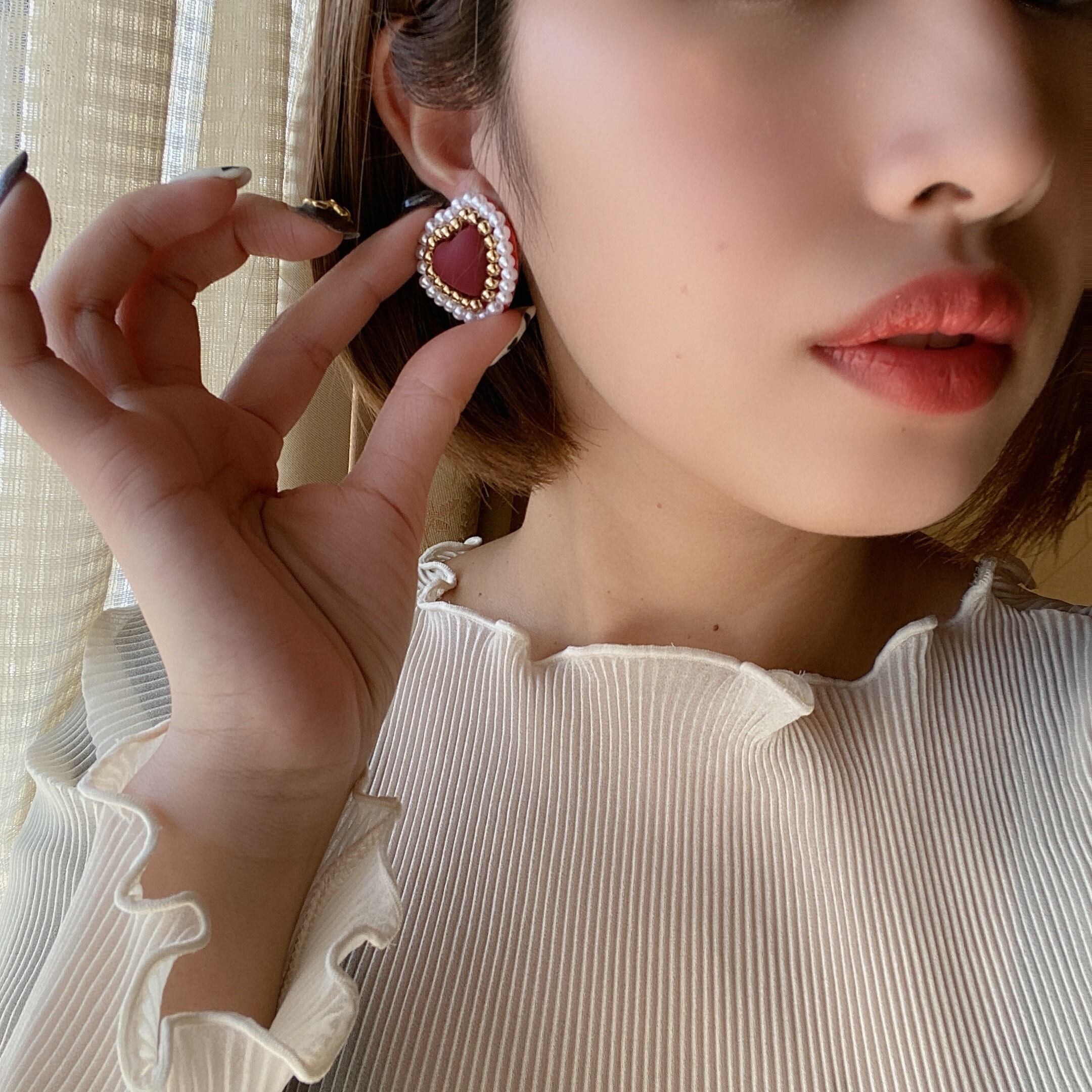 ハートのビーズ刺繍ピアス イヤリング