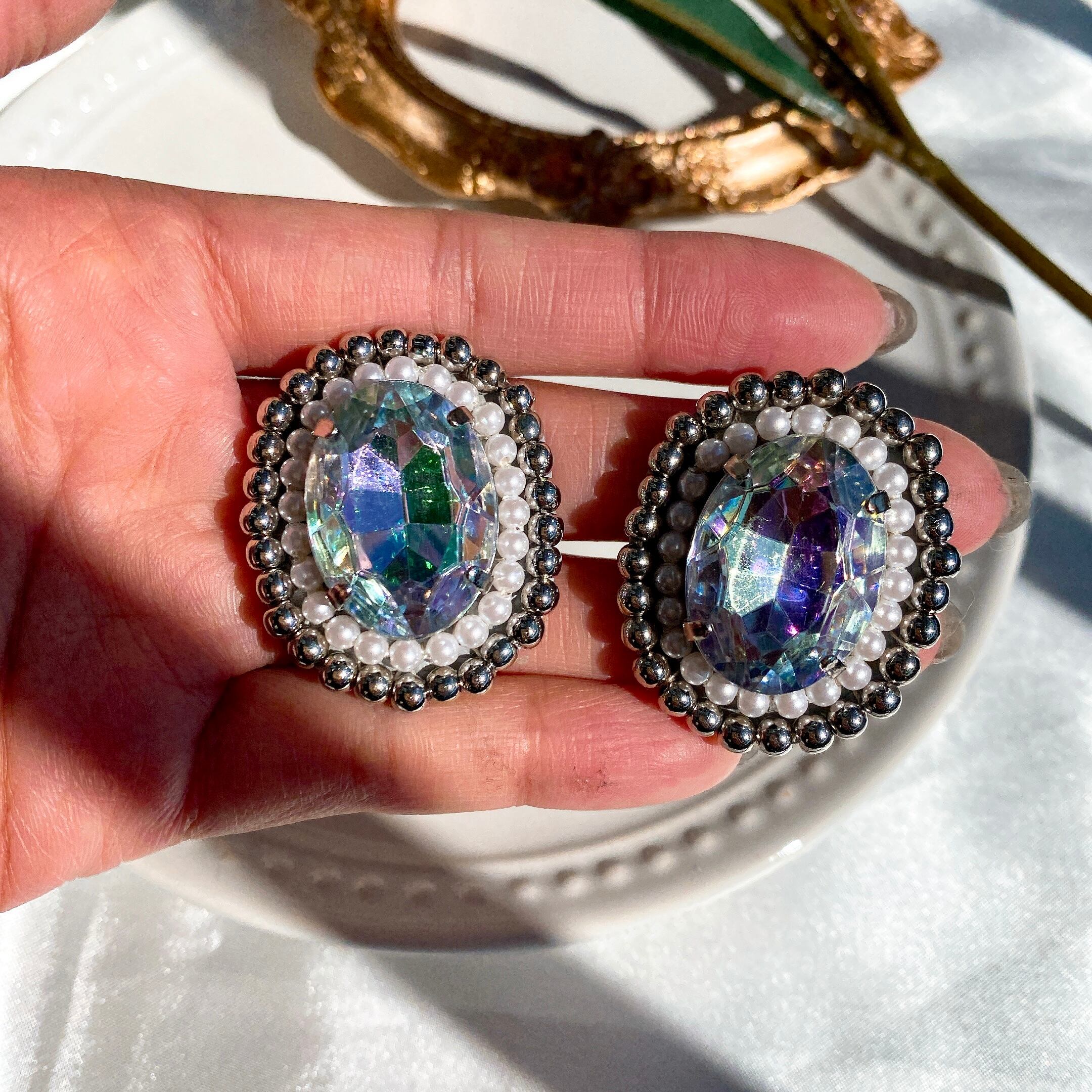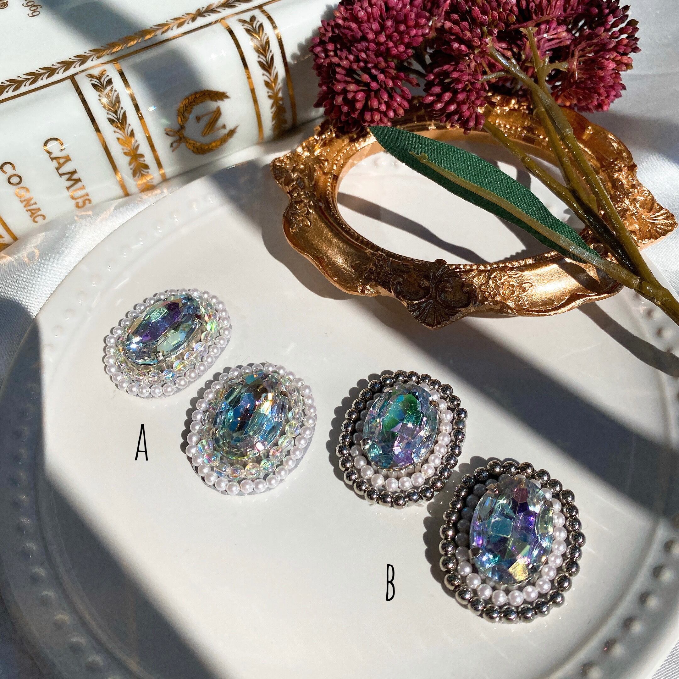 手縫いビーズ刺繍のビジューピアス イヤリング