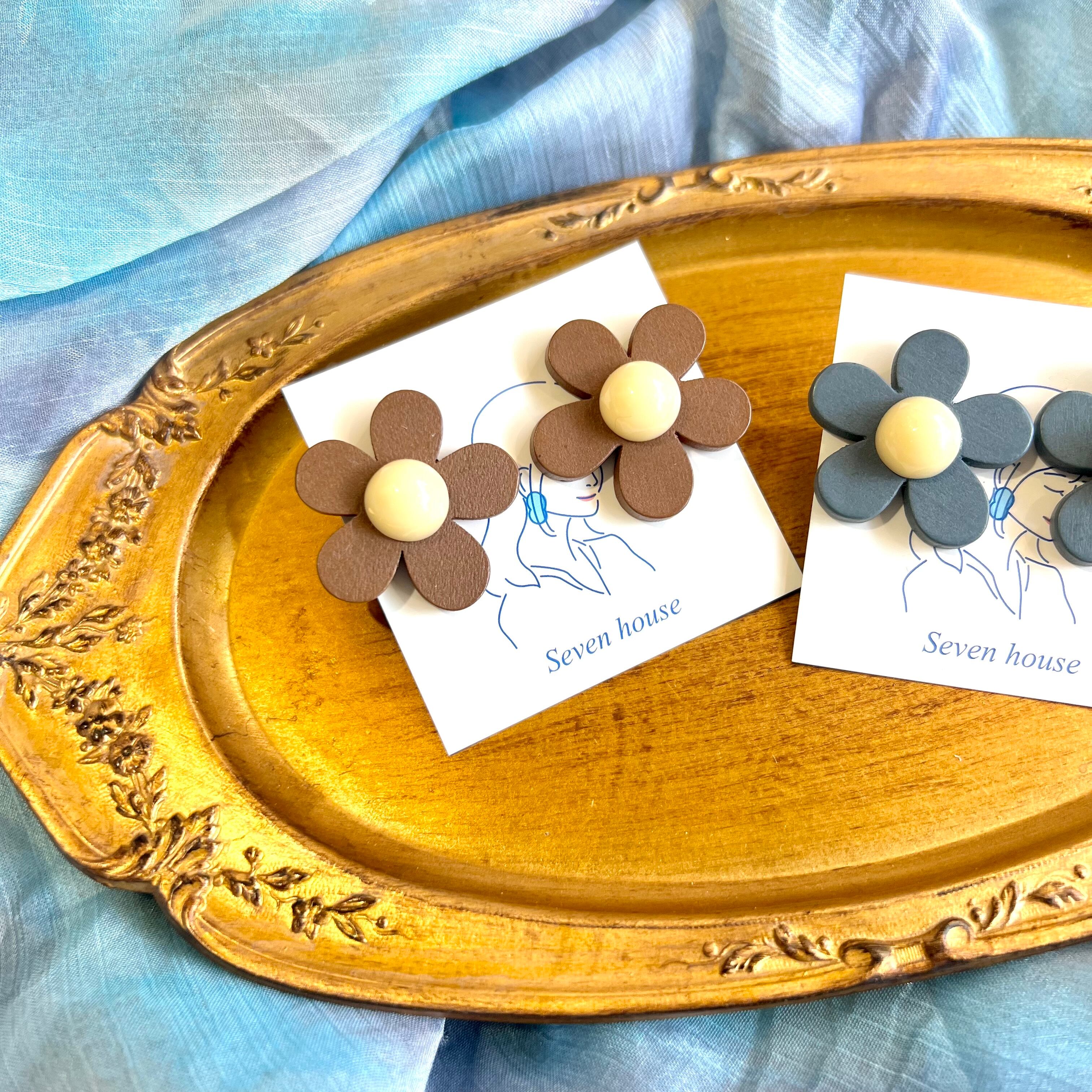ウッド フラワー ピアス イヤリング