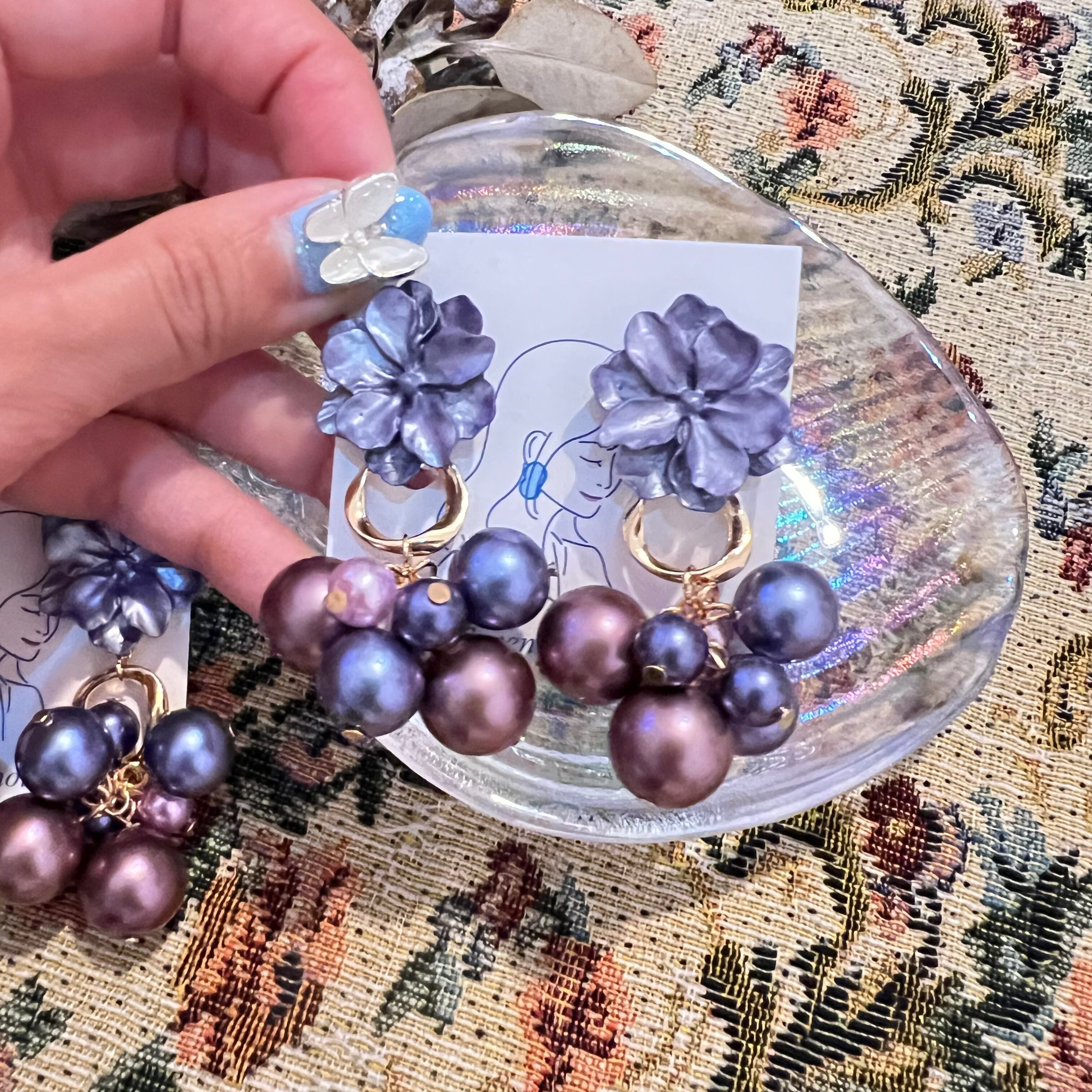 じゃらじゃらパールのお花ピアス イヤリング