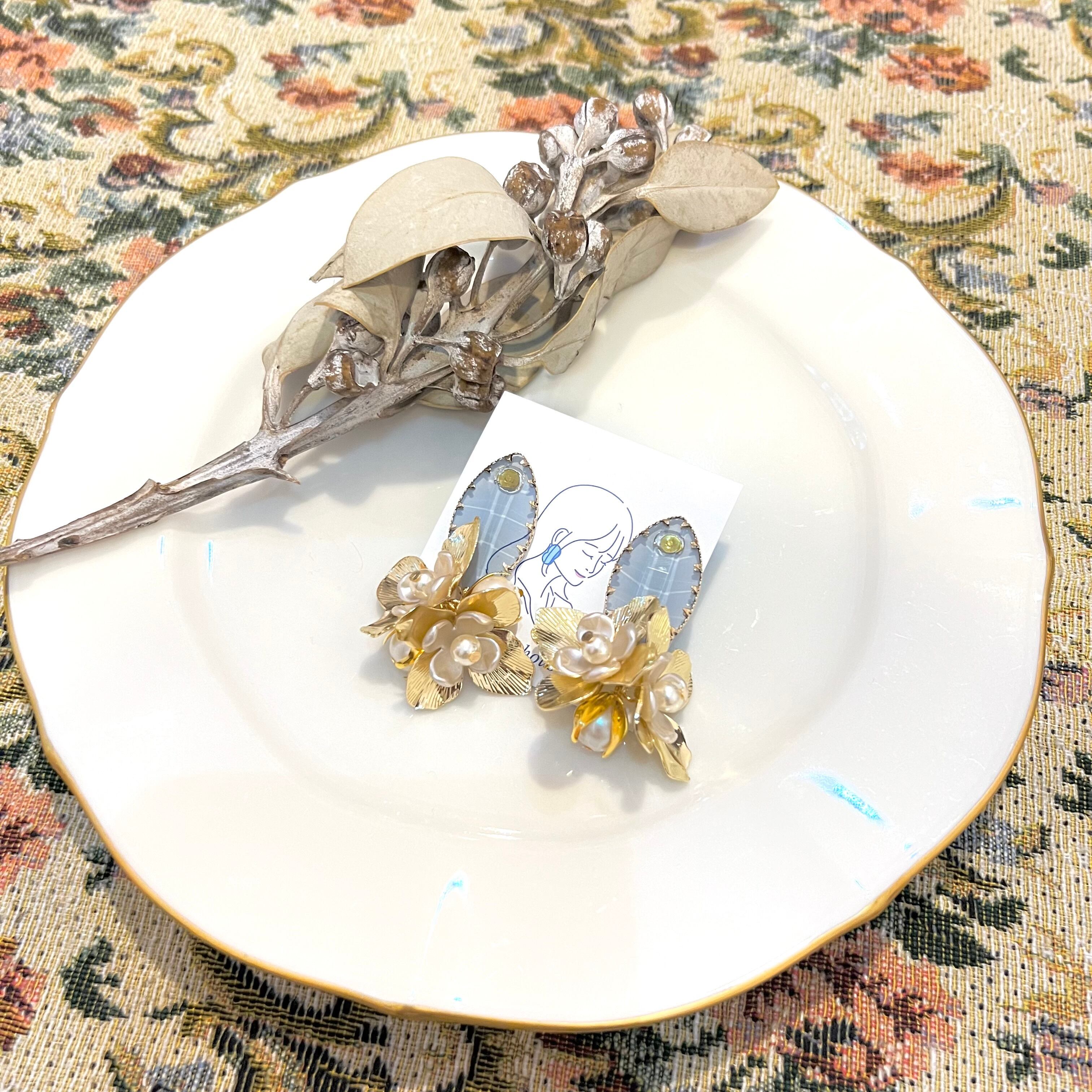 ガラスとお花のピアス